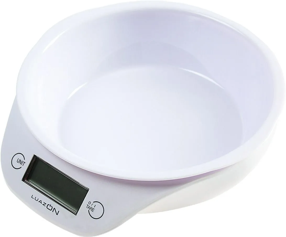 Весы кухонные LuazON LVKB-501, электронные, до 5 кг, чаша 1.3 л, белые 3089931