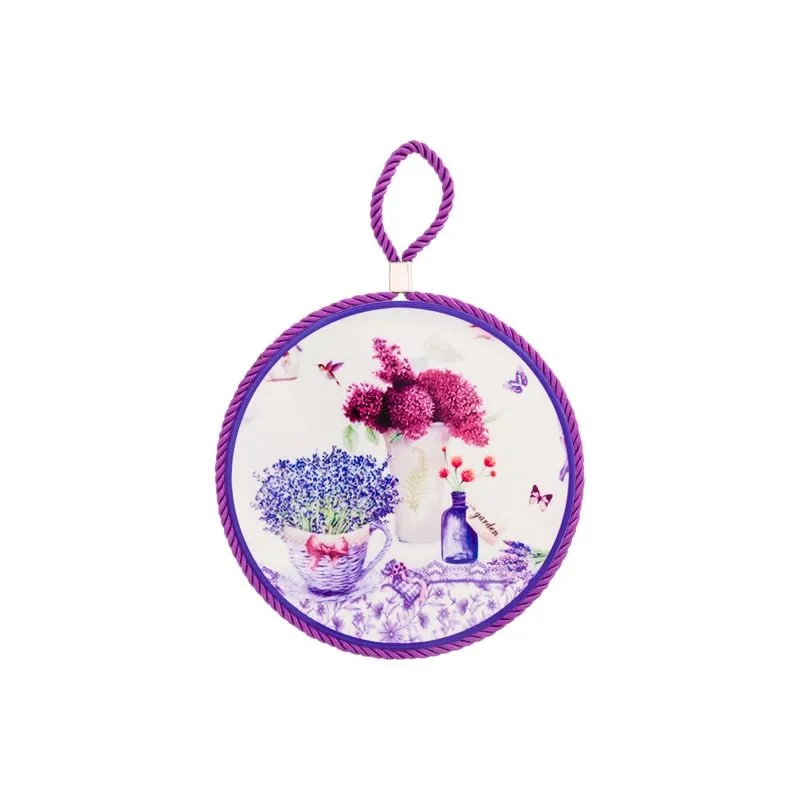 Подставка под горячее "Лаванда" 17*17*1 см с фиолетовым шнурком, круглая, керамика