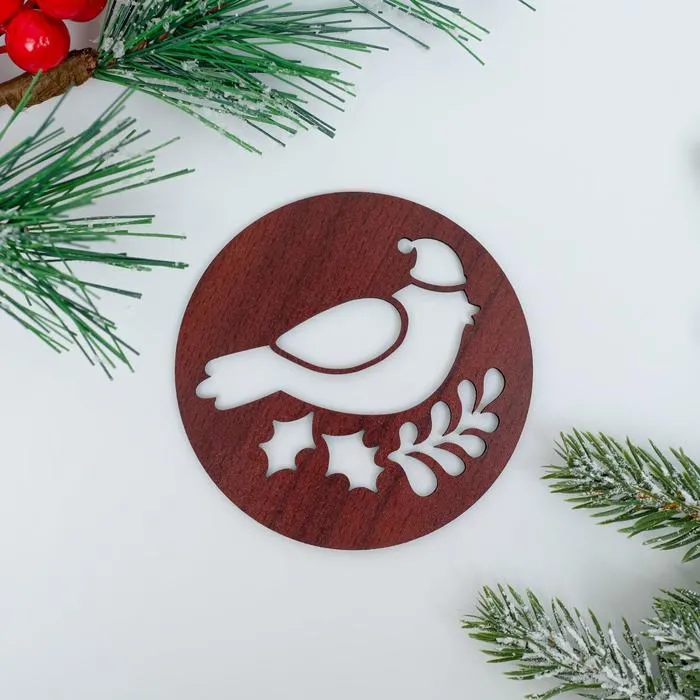 Подставка деревянная под горячее резная "Счастья в дом. Снегирь", 9х9 см 5456665