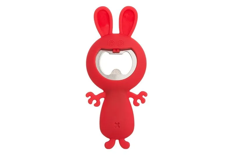 Открывалка для бутылок "Зайка красный" 10,5*4,5*1 см, силикон + нержавеющая сталь, упаковка - картонный хедер