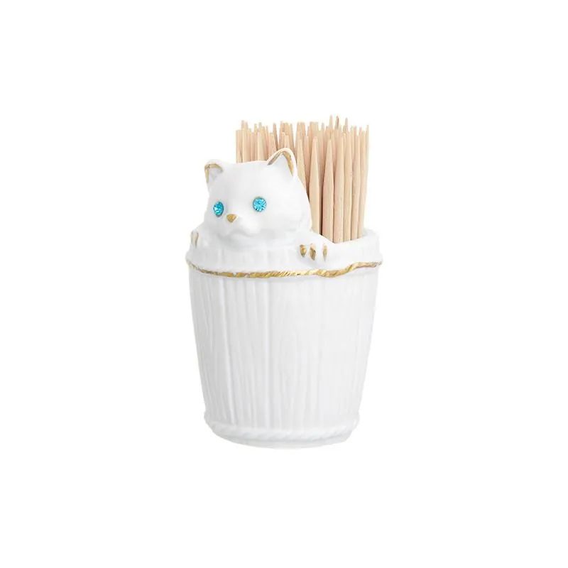 Вазочка под зубочистки "Кошечка в кадушке стразы" белая, 5,5*5,3*8 см 65 мл, золото, фарфор