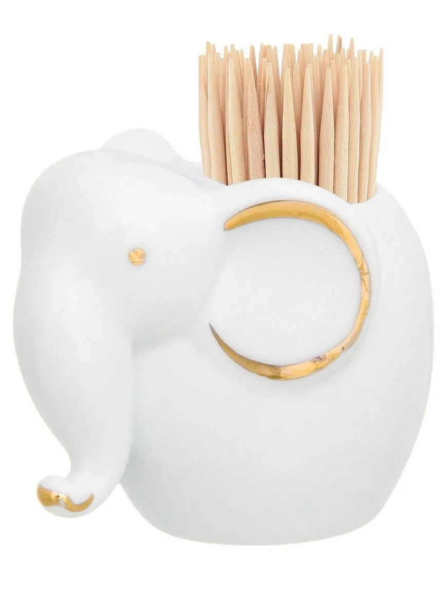 #Вазочка под зубочистки "Слон" белая, 6*4*5 см 35 мл, золото, фарфор