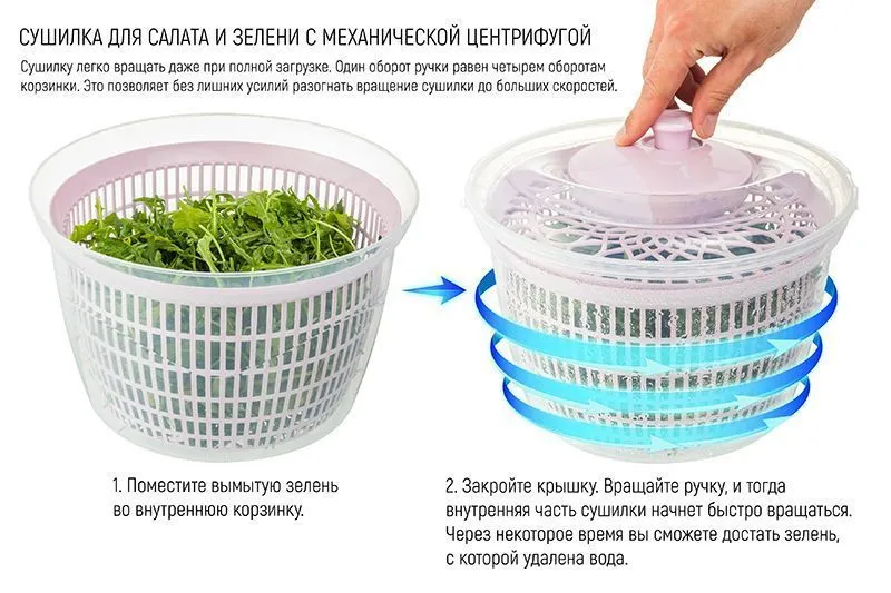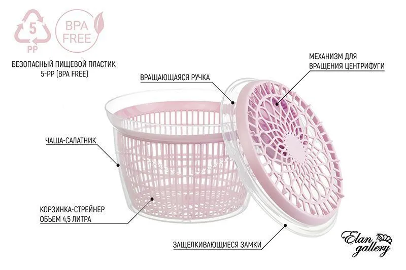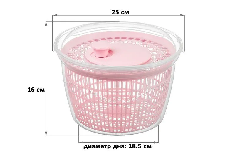 Сушилка для зелени "Светло-сиреневая", 25*25*16 см, 4,5 л, с механической центрифугой, полипропилен, в комплекте: чаша-салатница, крышка с ручкой, кор