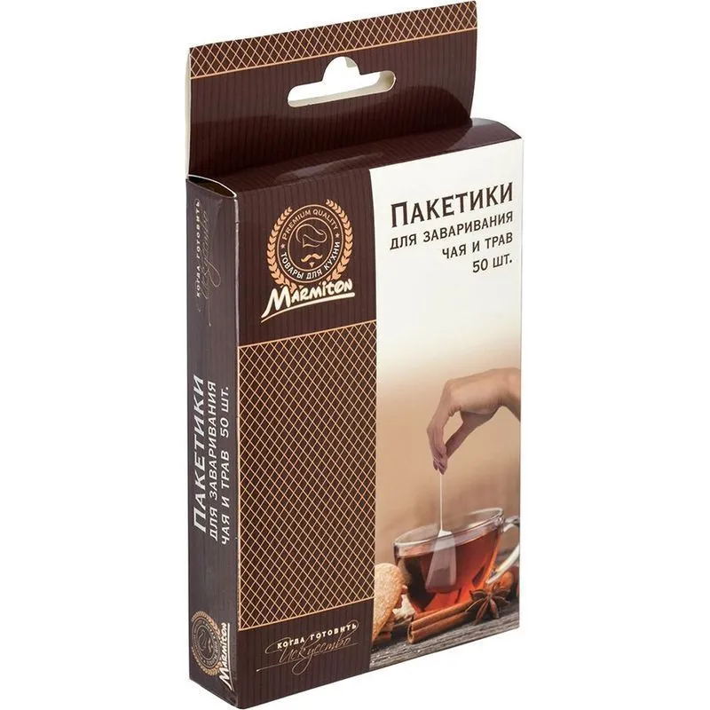#Пакетики для заваривания чая и трав 6*8 см, на завязках (50 шт) MARMITON /400/20