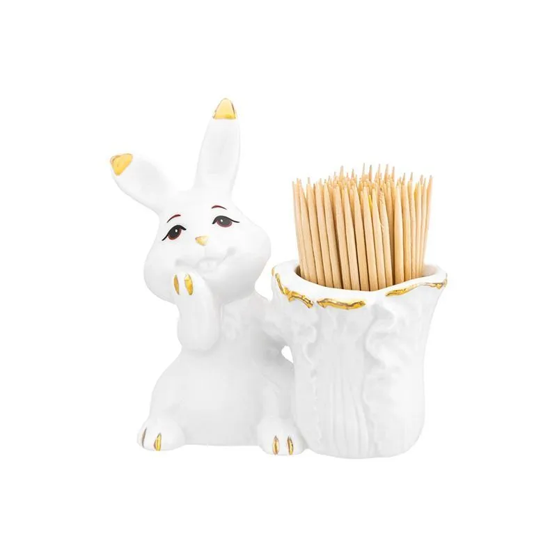#Вазочка под зубочистки "Кролик с капустой" 8*4,5*8,5 см, белая с золотом, фарфор