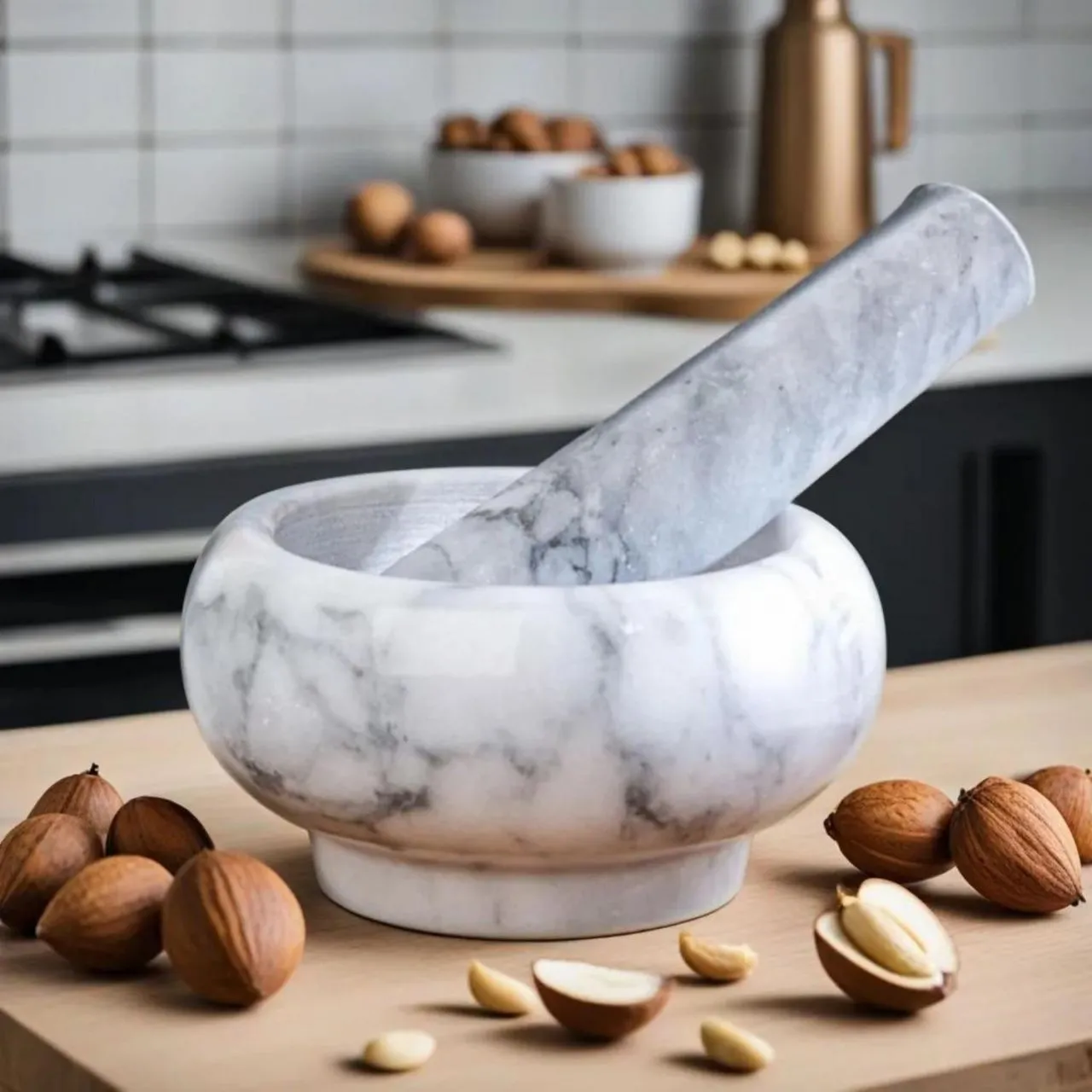 Ступка с пестиком средняя, 5,5см, белый мрамор 2383807