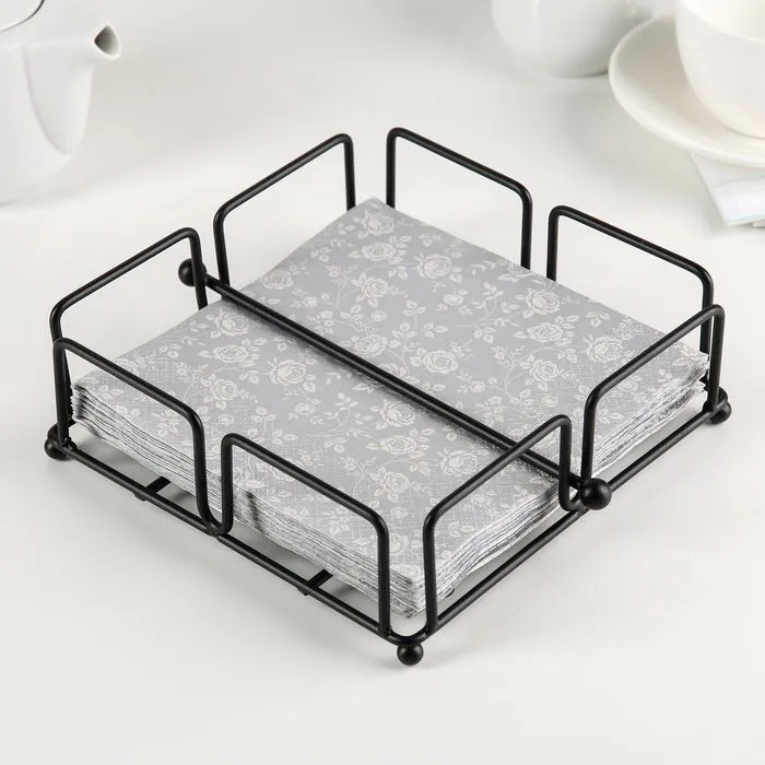 #Салфетница с держателем "ПРИБОРЫ" 18х18х7 см, цвет черный 4329136