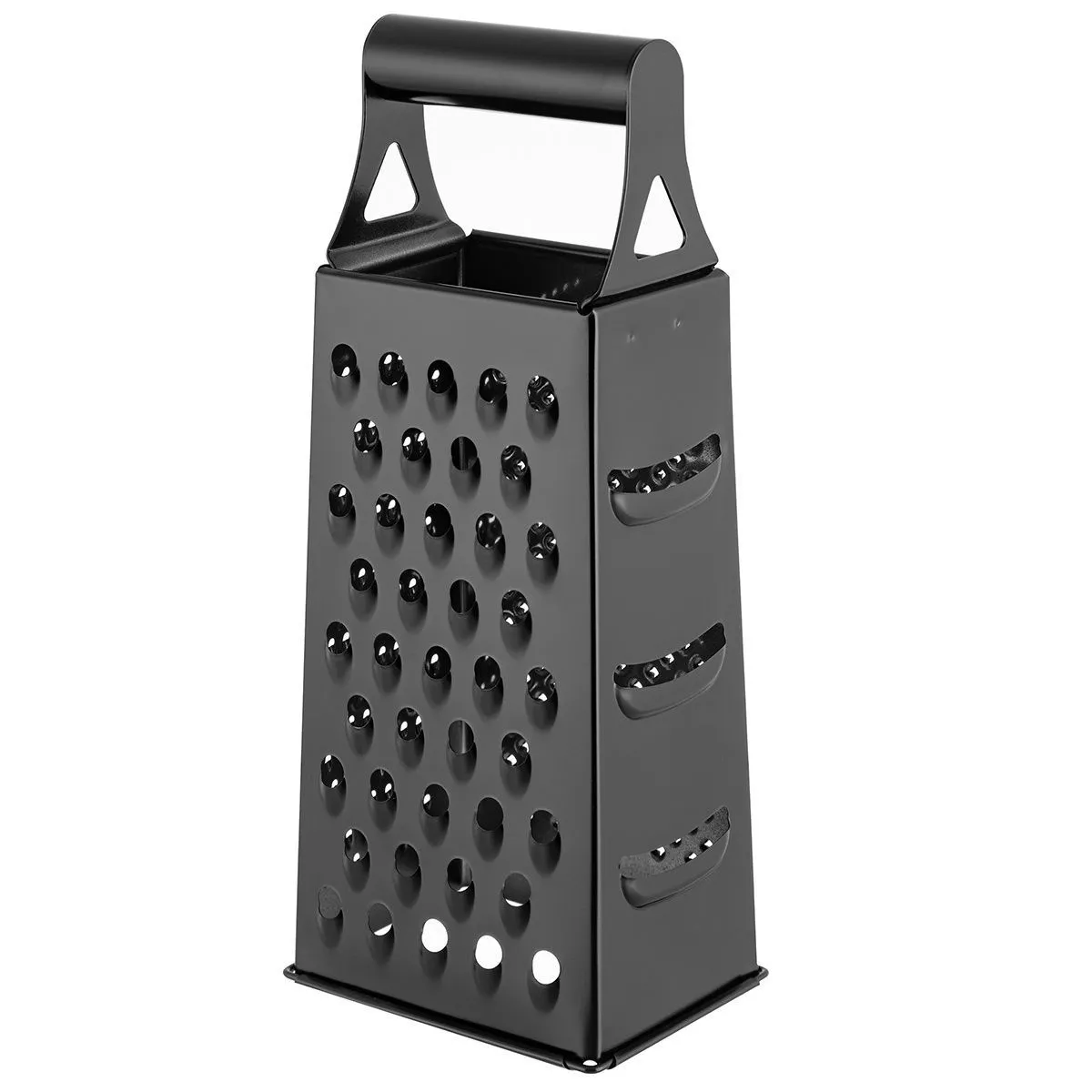 Тёрка "Черная" 10,6*8,1*24,2 см 4-сторонняя, размер рабочих поверхностей - 2 стороны 10,6*19 см + 2 стороны 8,1*19 см, длина рукоятки 8 см, диаметр ру