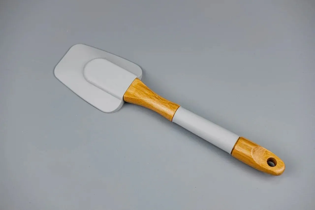 #Силиконовая лопатка твердая для кухни с бамбуковой ручкой, серия Уют SK-3312B