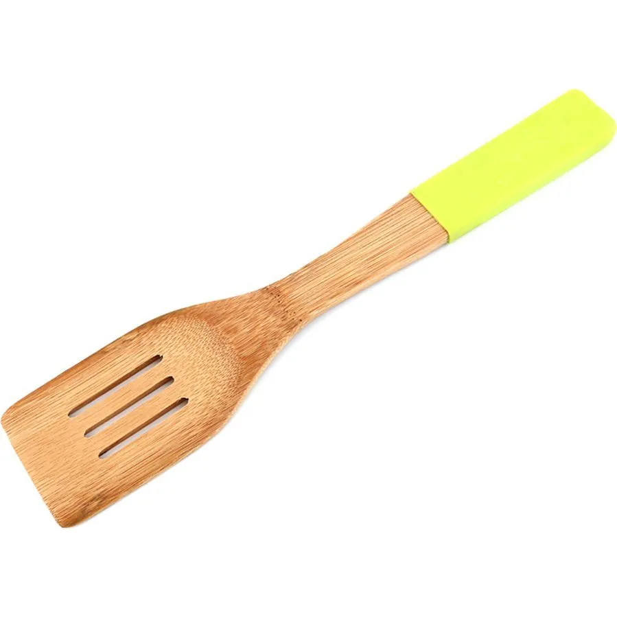 #ЛОПАТКА КУХОННАЯ С ВЫРЕЗОМ AGNESS C СИЛИКОНОВОЙ ВСТАВКОЙ 30*6 СМ БАМБУК 897-037