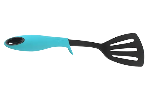 Лопатка BK-3241 с прорезями. Размер 33*9,5*4см. Материал ручки пластик с покрытием soft touch. Состав: нейлон. Выдерживает температуру до +210С.
