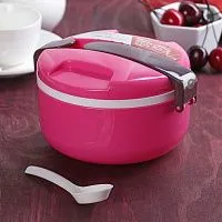Ланч-бокс 18х15,5х9,5 см "С собой", 2 уровня: 0,3 / 1 л, с ложкой, цвет МИКС