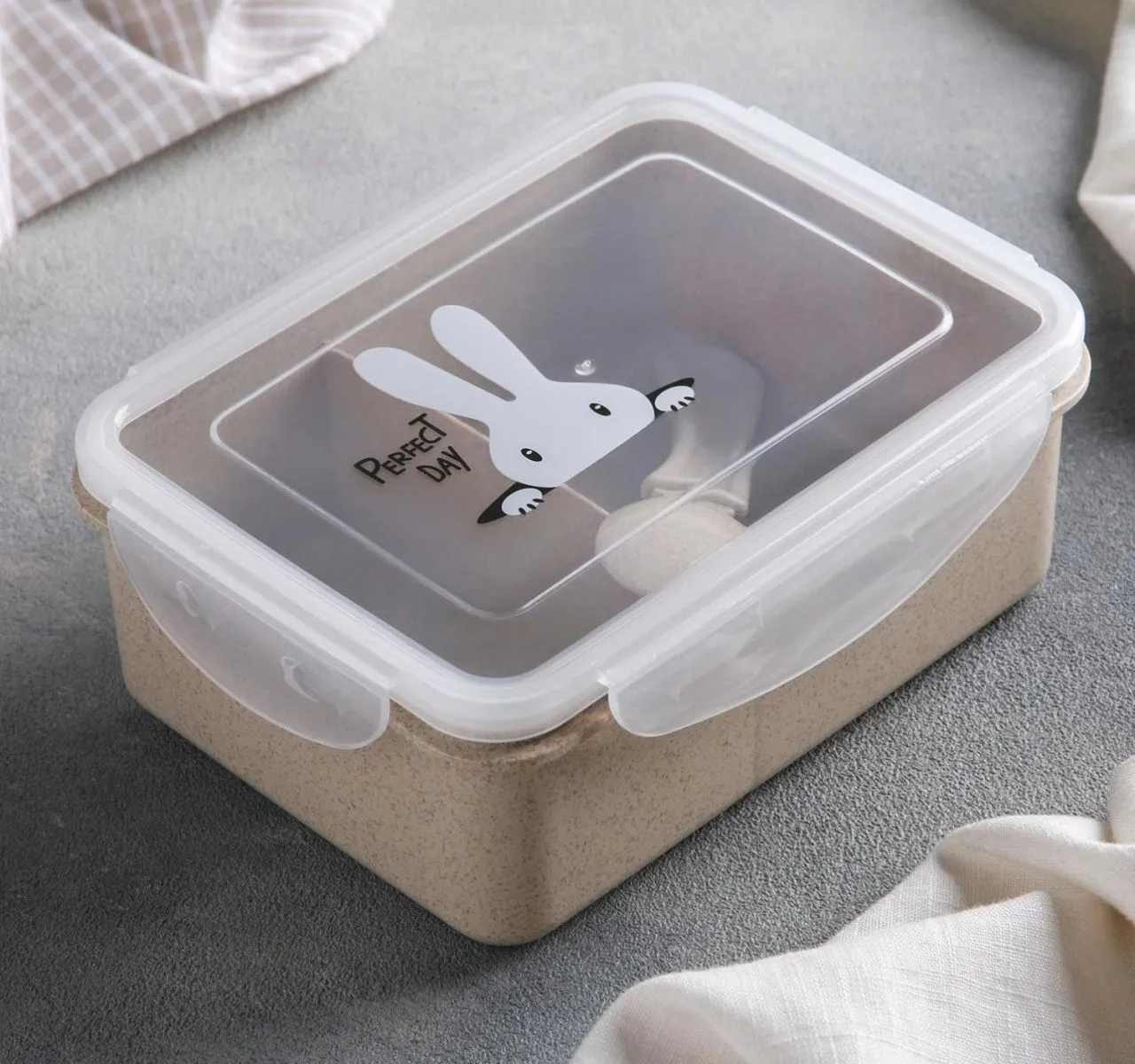 Ланч-бокс 2 отделения "Прятки" прямоугольный 17,5х13х7 см с ложкой, цвет МИКС 4279027