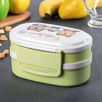Ланч-бокс 2 уровня "Люблю покушать", овальный, с ложкой, цвета МИКС