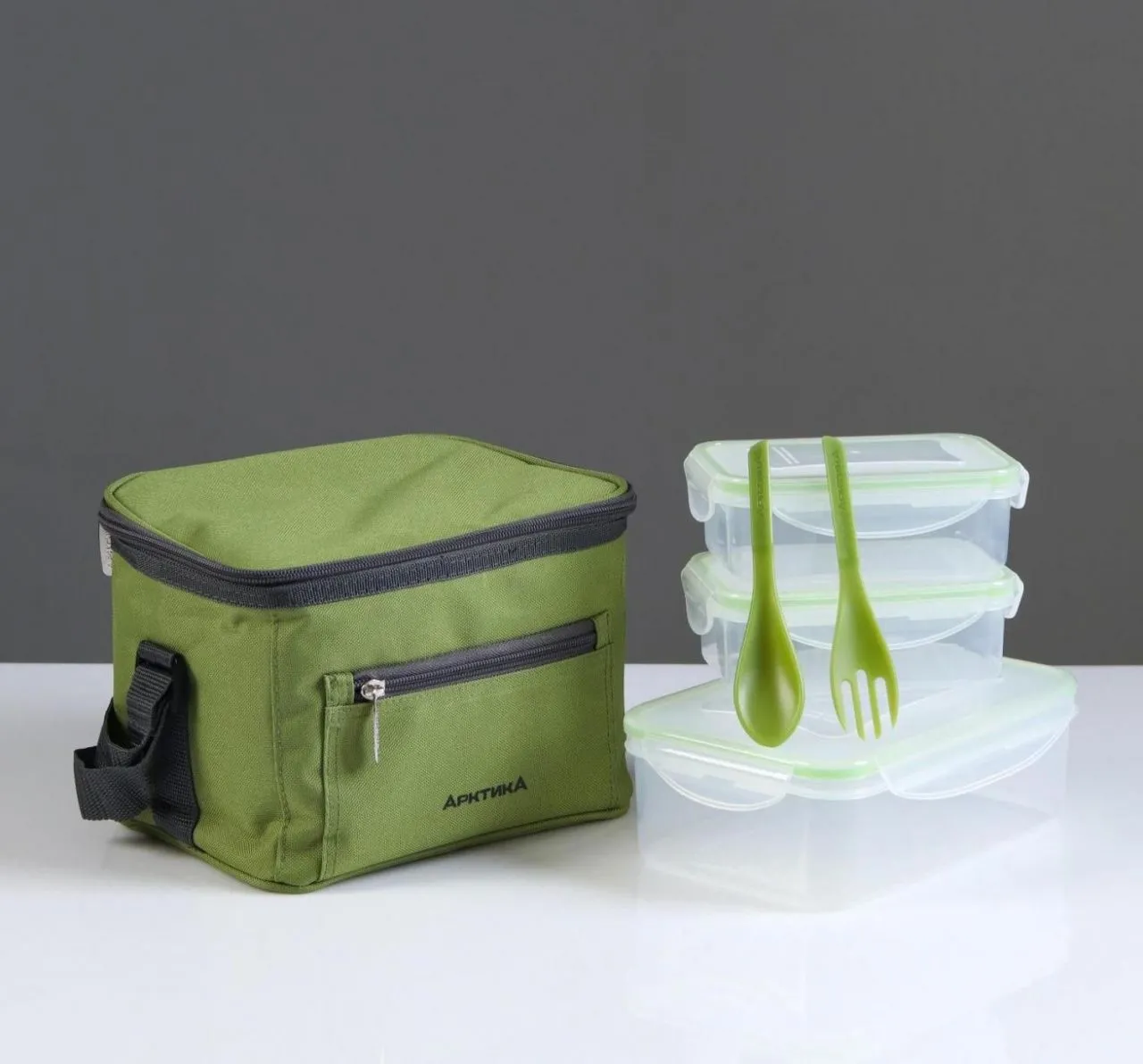 Ланч-сумка тм "Арктика", 2,5 л, арт. 020-2500, зелёная с 3мя контейнерами