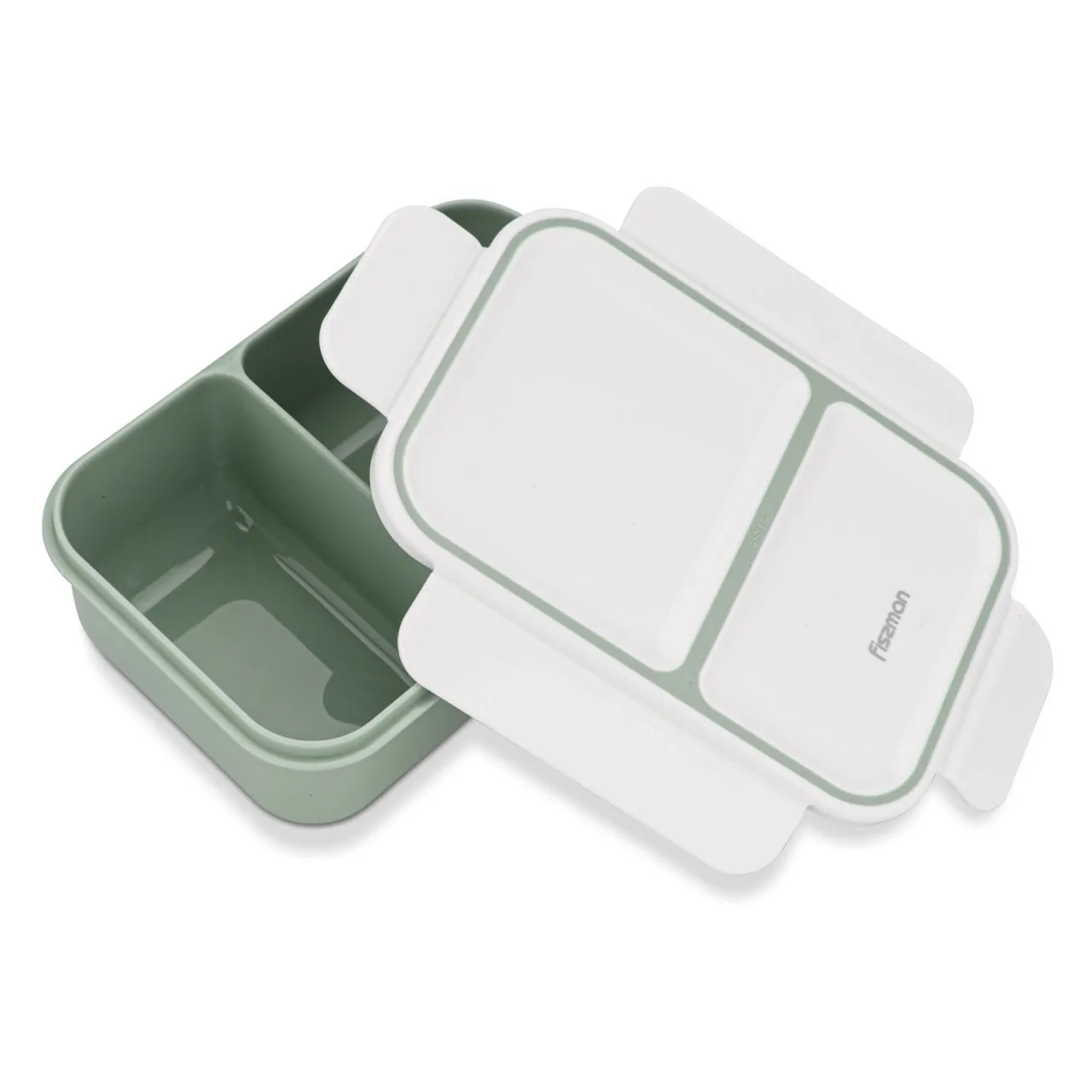 6769 FISSMAN Ланч-бокс с двумя отделениями 20x14x8см / 1300мл, цвет Зеленый (пластик)