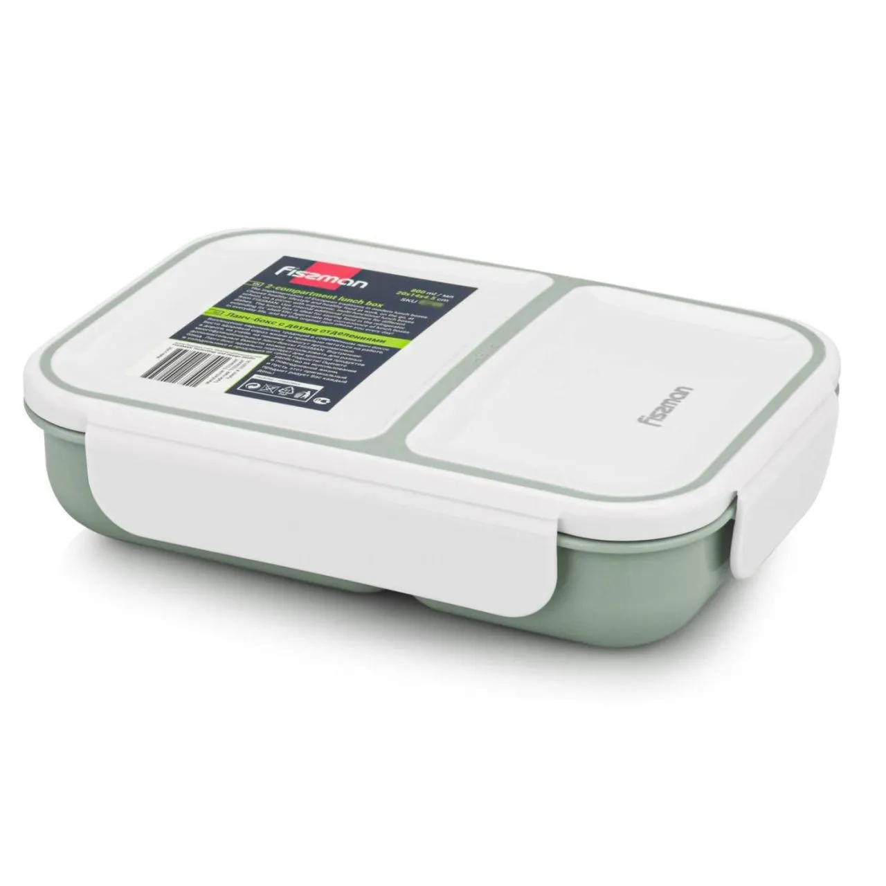 6750 FISSMAN Ланч-бокс с двумя отделениями 20х14х5 см / 800мл, цвет Зеленый (пластик)