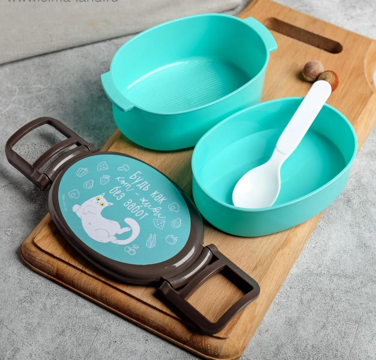 Ланч-бокс двухуровневый "Будь как кот - живи без забот", 580 мл, с ложкой 5284333
