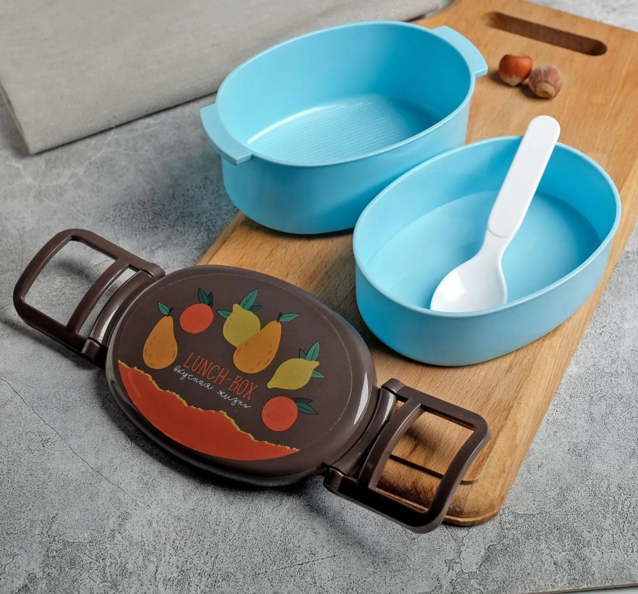 Ланч-бокс двухуровневый "Вкусная жизнь", 580 мл, с ложкой 5284335