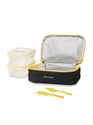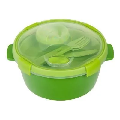 #Ланч-бокс 4 отсека 1300мл ложка, вилка, палочки, соусник 8,2*23*16,3см цв. зеленый, 11505-63