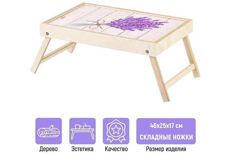 Поднос-столик сувенирный "Букет лаванды" 46*25*17 см, размер в сложенном виде 37,5*25*4 см, дерево