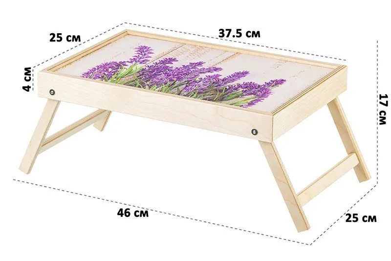 Поднос-столик сувенирный "Лаванда" 46*25*17 см, размер в сложенном виде 37,5*25*4 см, дерево