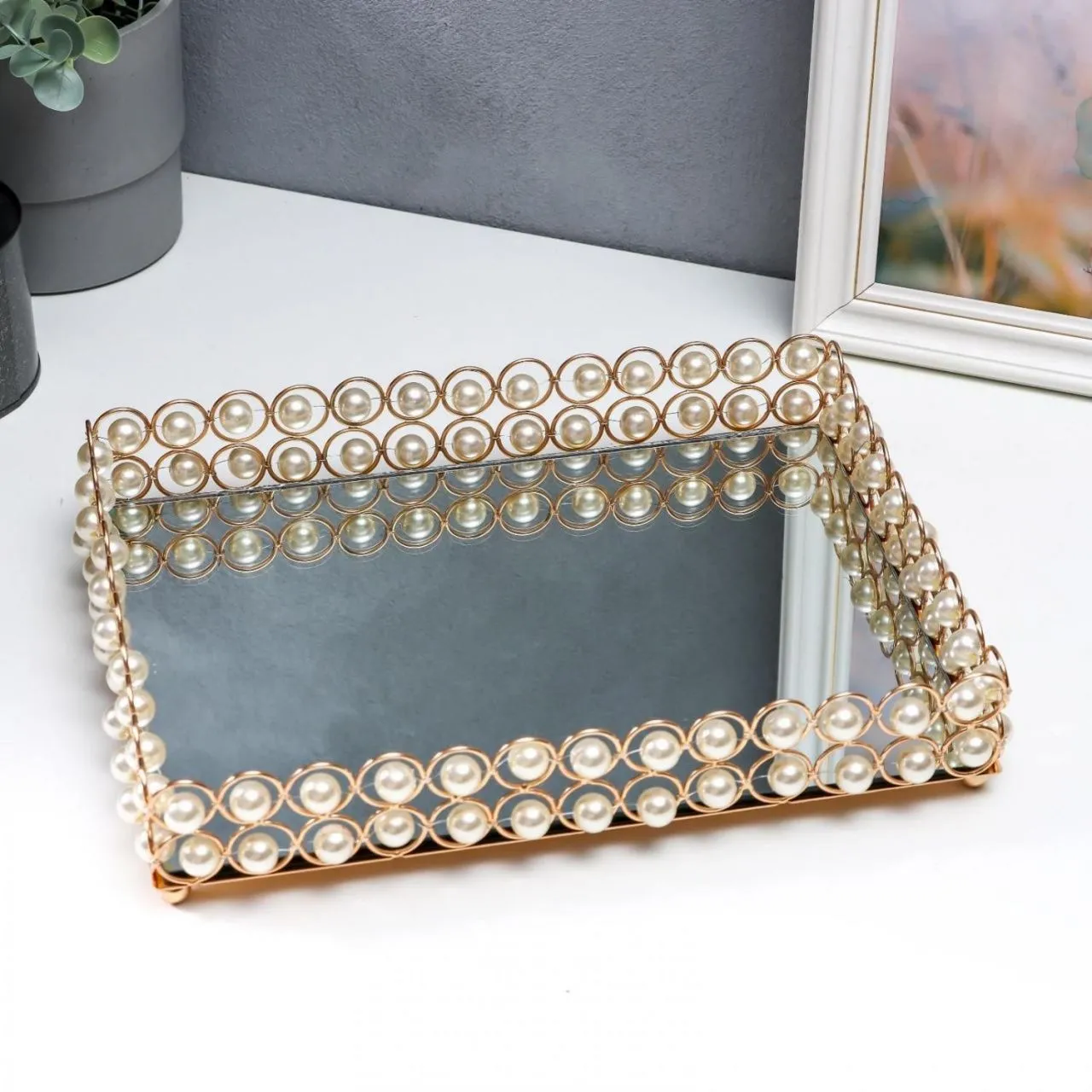 Поднос декоративный с зеркалом "Жемчужинки" 5,5х23х30 см 6870364