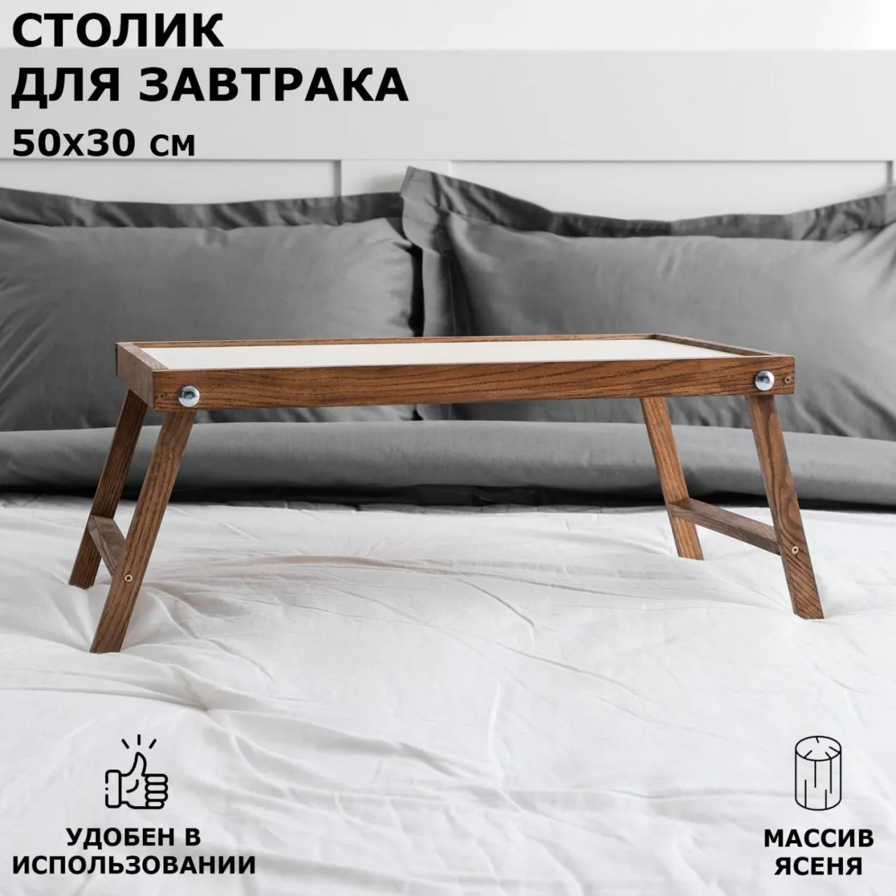 Столик для завтрака "Ренессанс", 50 х 30 см, массив ясеня, цвет темный орех 3948079