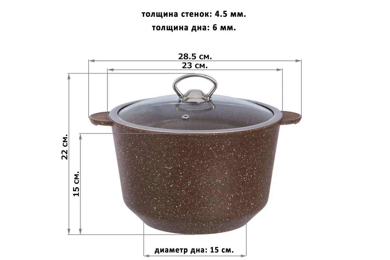 Кастрюля "Гранит" 28,5*23*22 см, 4 л с крышкой ф22, высота без крышки - 15 см, покрытие - 3-х слойное антипригарное (Quantanium), подходит для использ