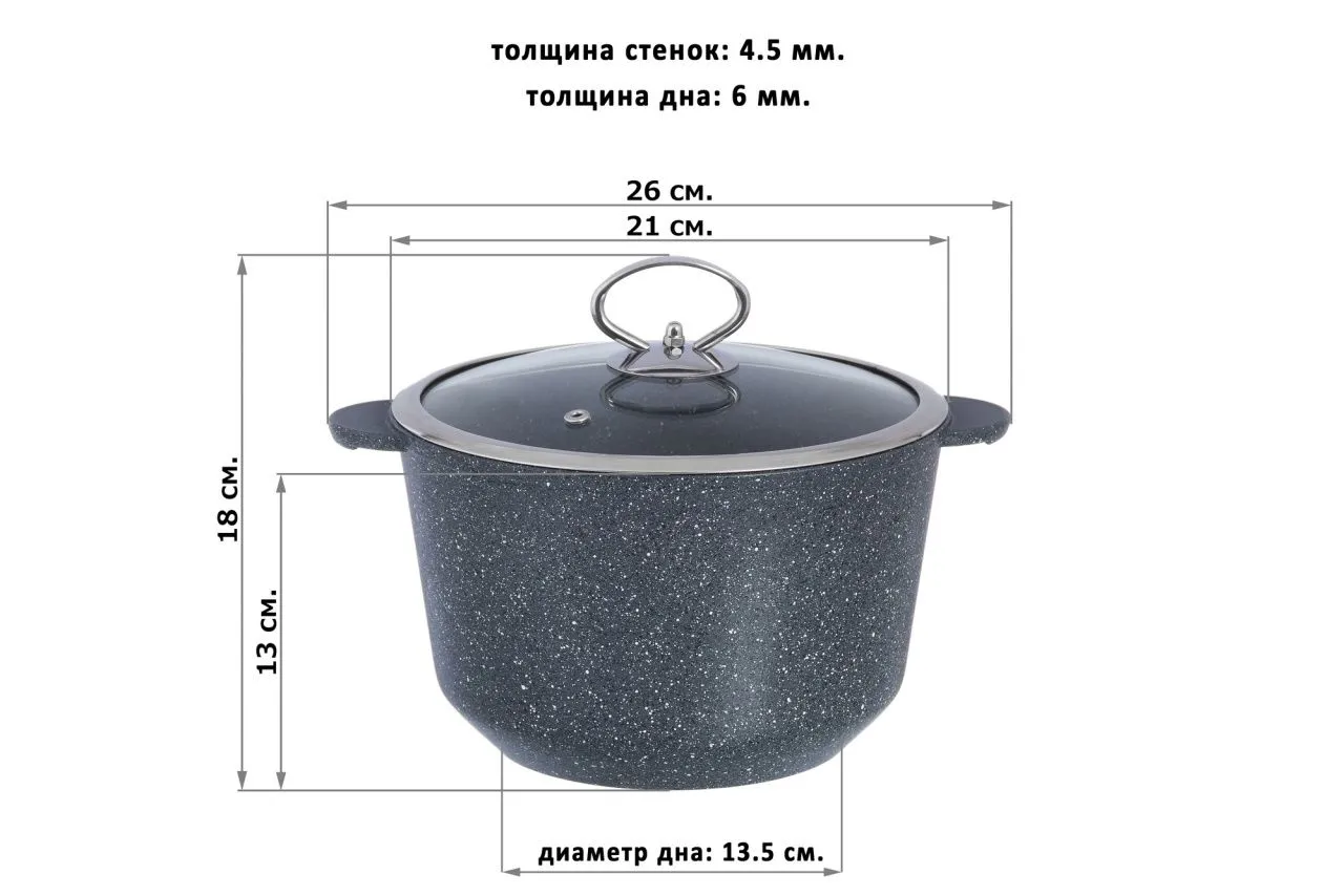 Кастрюля "Мрамор" 26*21*18 см, 3 л с крышкой ф20, высота без крышки 13 см, покрытие - 3-х слойное антипригарное (Quantanium), подходит для использован