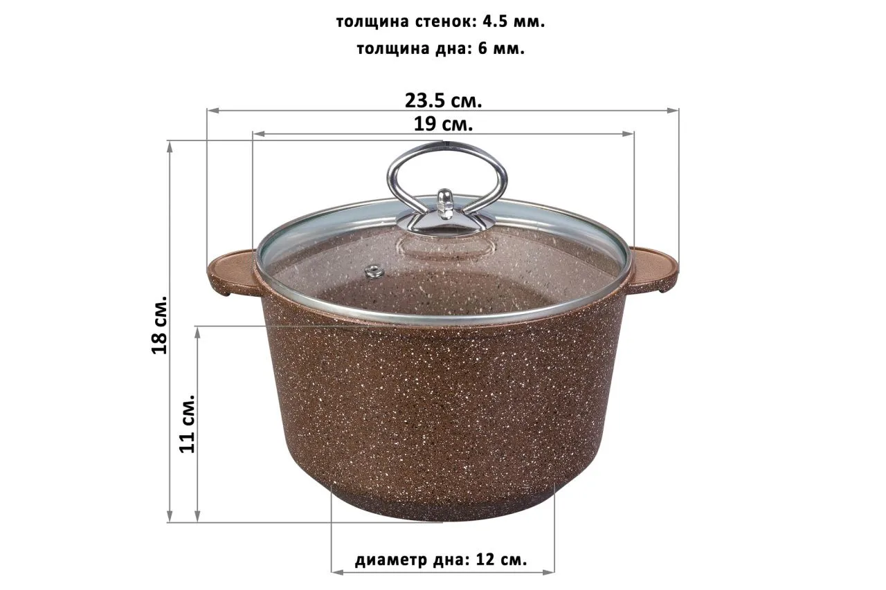 Кастрюля "Гранит" 23,5*19*18 см, 2 л, с крышкой ф18, высота без крышки - 11 см, покрытие - 3-х слойное антипригарное (Quantanium), подходит для исполь