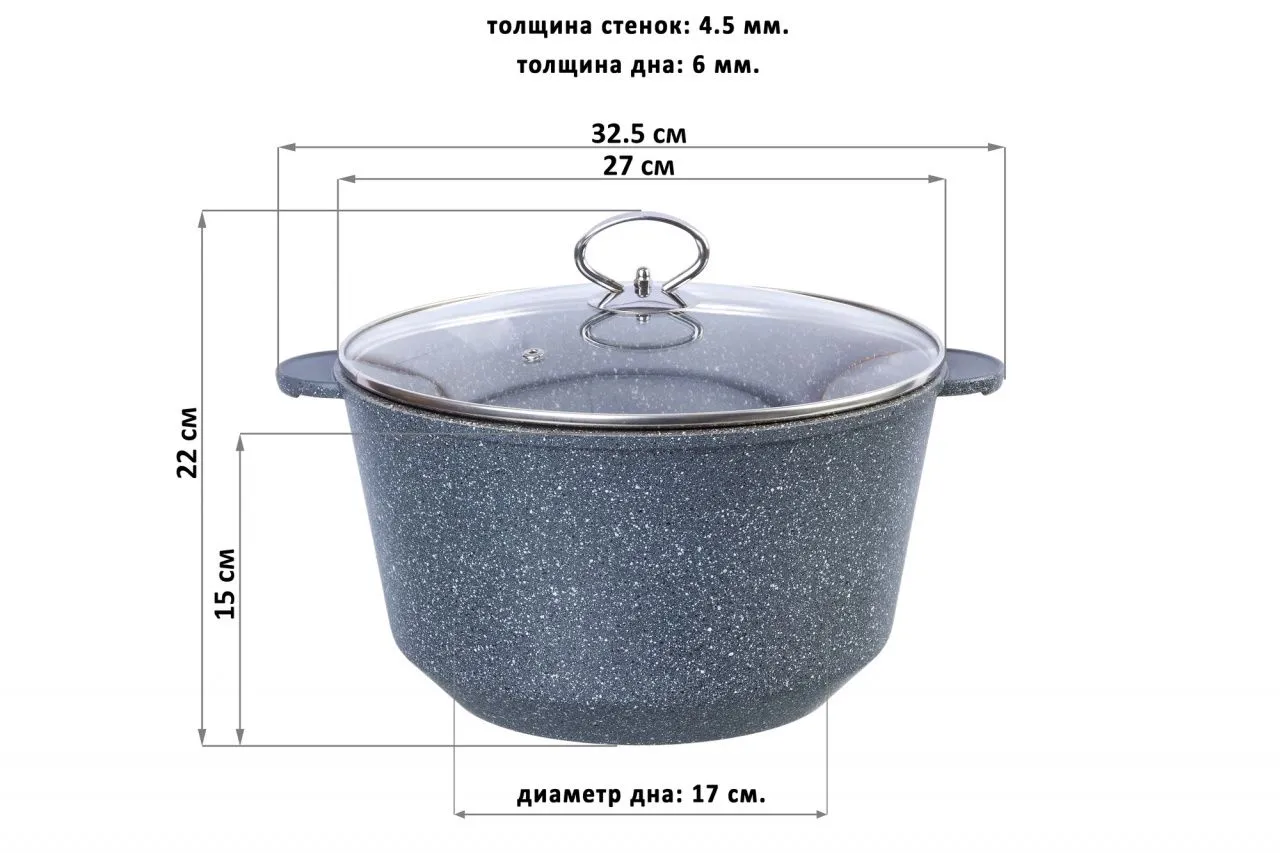 Казан (кастрюля) "Мрамор" 32,5*27*22 см, 6 л, с крышкой ф26, высота без крышки - 15 см, покрытие - 3-х слойное антипригарное (Quantanium), подходит дл