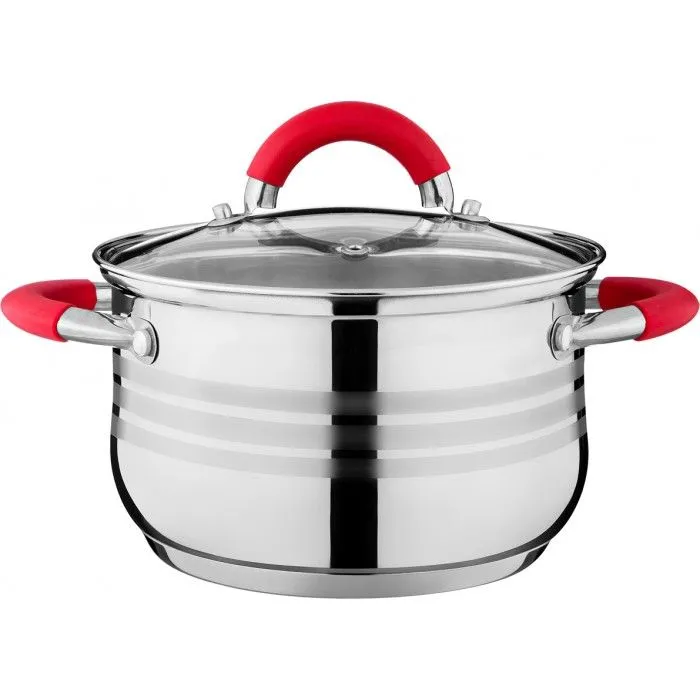 КАСТРЮЛЯ AGNESS СО СТЕКЛ. КРЫШКОЙ СИЛИКОН. РУЧКИ, 2,9 Л. 18*11,5 СМ, НЕРЖ.СТАЛЬ, ИНДУКЦИЯ