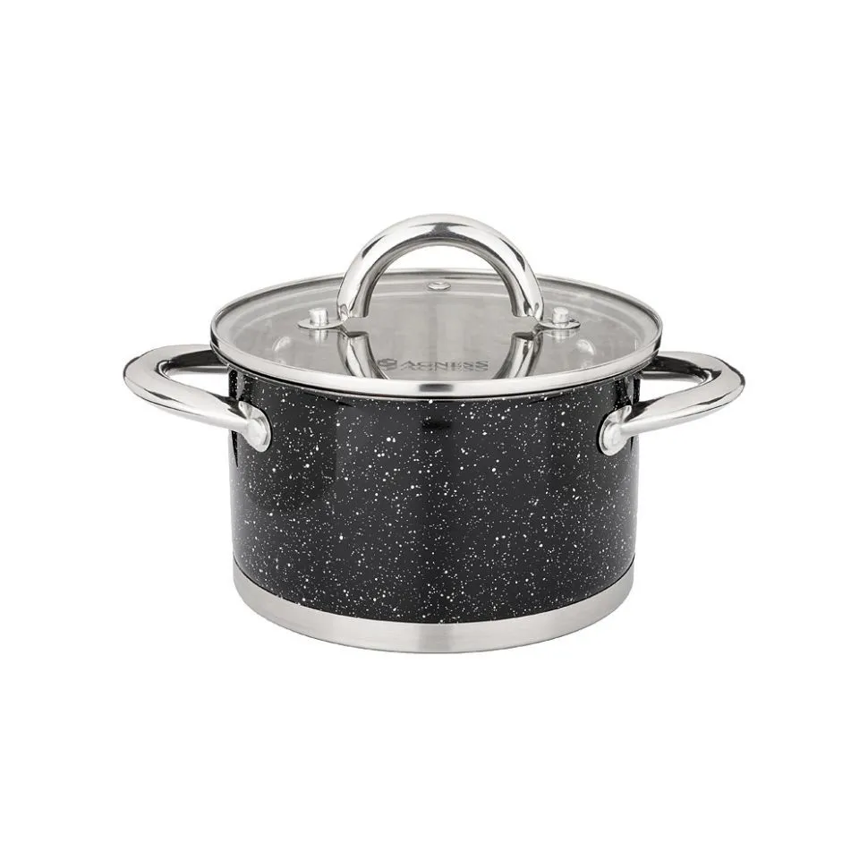 Кастрюля Agness Со Стеклянной Крышкой, Нерж.Сталь, Серия Black Marble 1,8Л 16Х9,5См 937-305