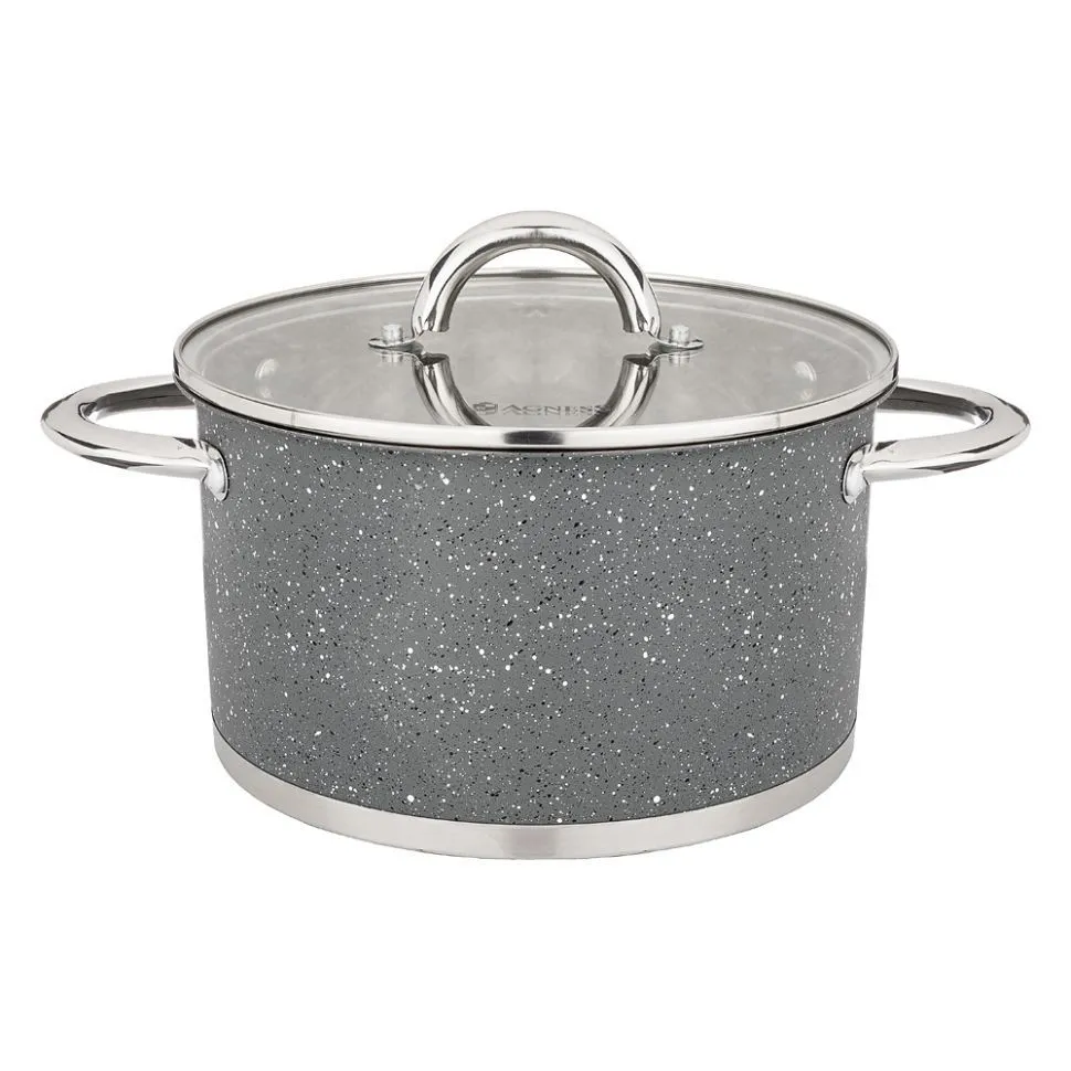 Кастрюля Agness Со Стеклянной Крышкой, Нерж.Сталь, Серия Монблан 4,6Л 22Х12,5См 937-313