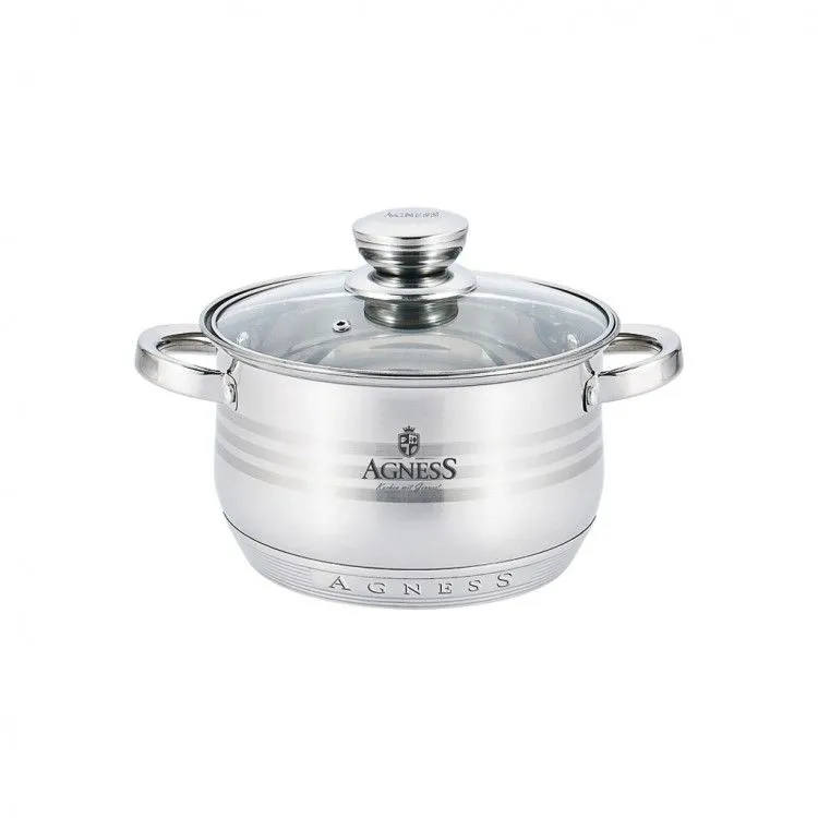 КАСТРЮЛЯ AGNESS СО СТЕКЛЯННОЙ КРЫШКОЙ, 2,1Л, 16Х10,5СМ 940-015