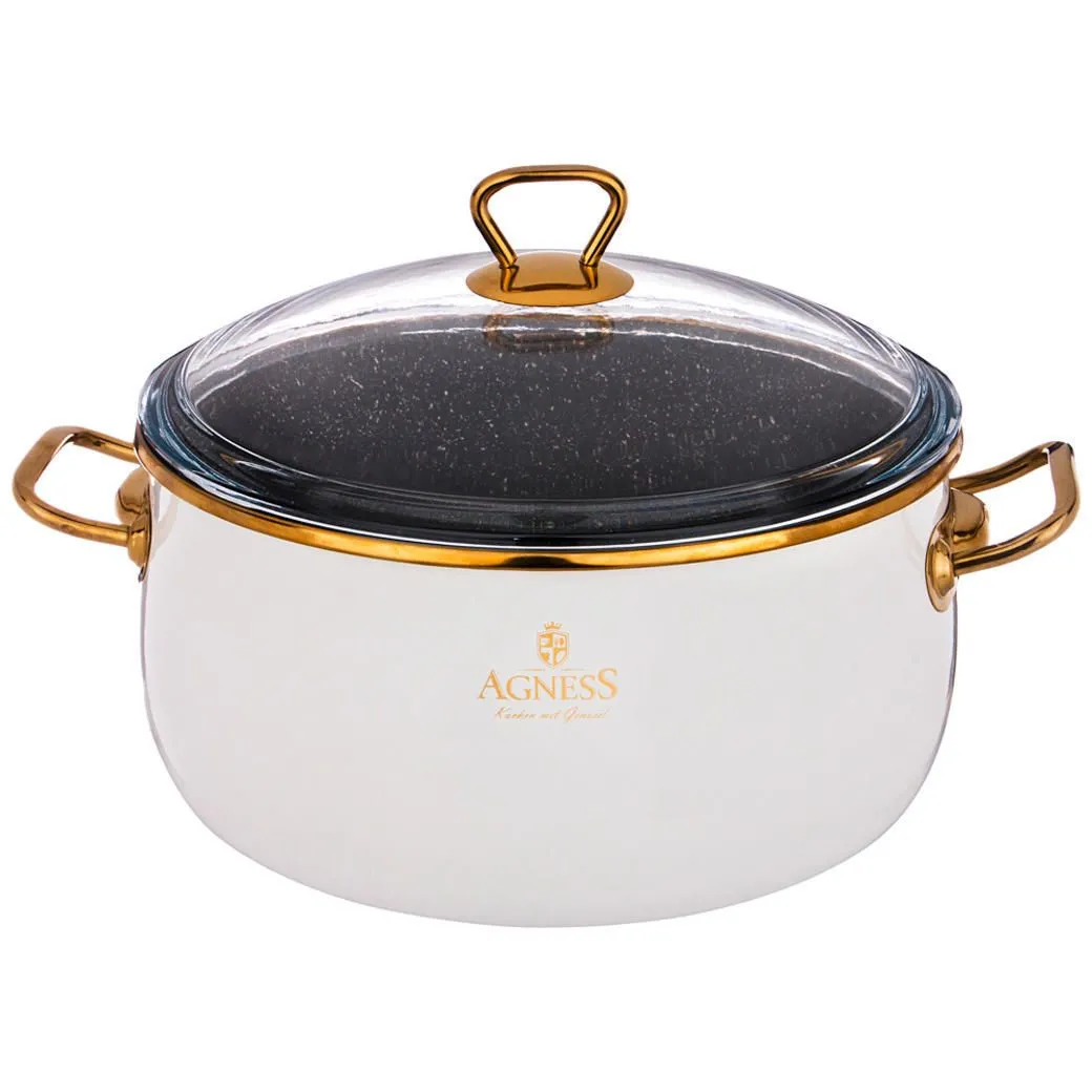 КАСТРЮЛЯ AGNESS ЭМАЛИРОВАННАЯ СО СТЕКЛ. КРЫШКОЙ И АНТИПРИГАР. "МРАМОРНЫМ" ПОКРЫТИЕМ, 20СМ / 3,2Л