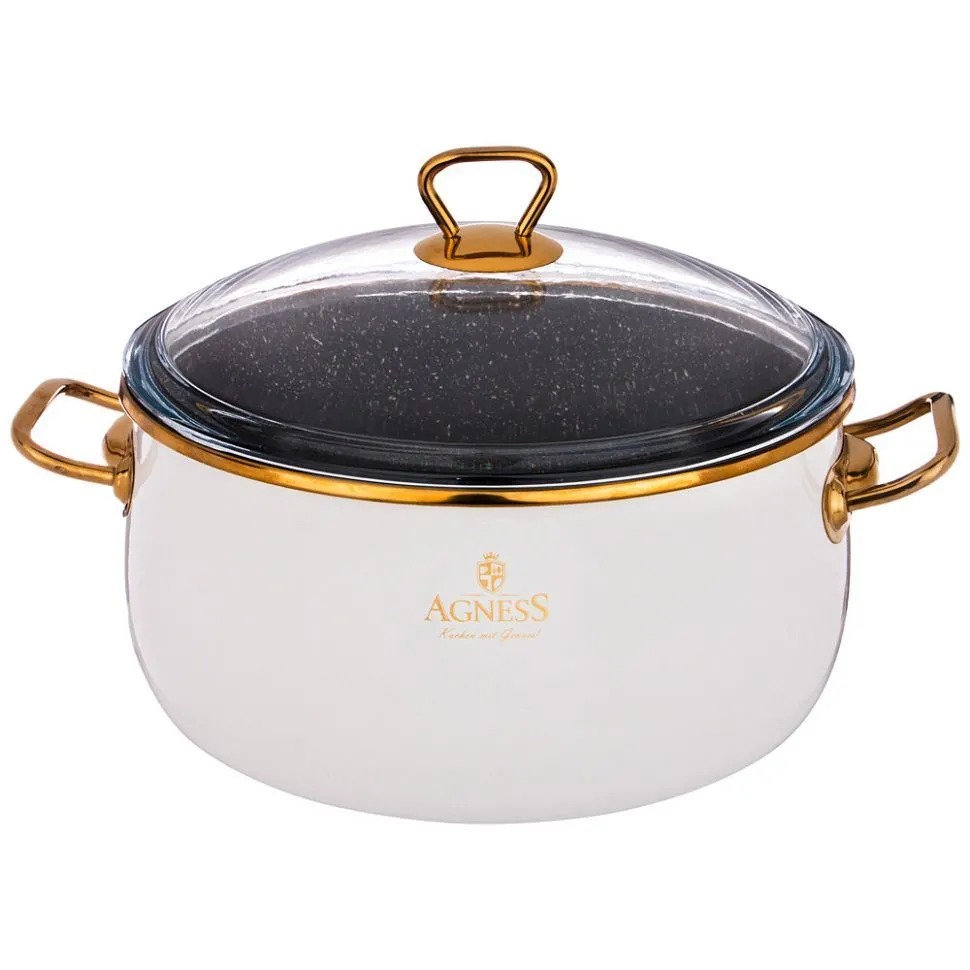 КАСТРЮЛЯ AGNESS ЭМАЛИРОВАННАЯ СО СТЕКЛ. КРЫШКОЙ И АНТИПРИГАР. "МРАМОРНЫМ" ПОКРЫТИЕМ, 24СМ / 5,3Л