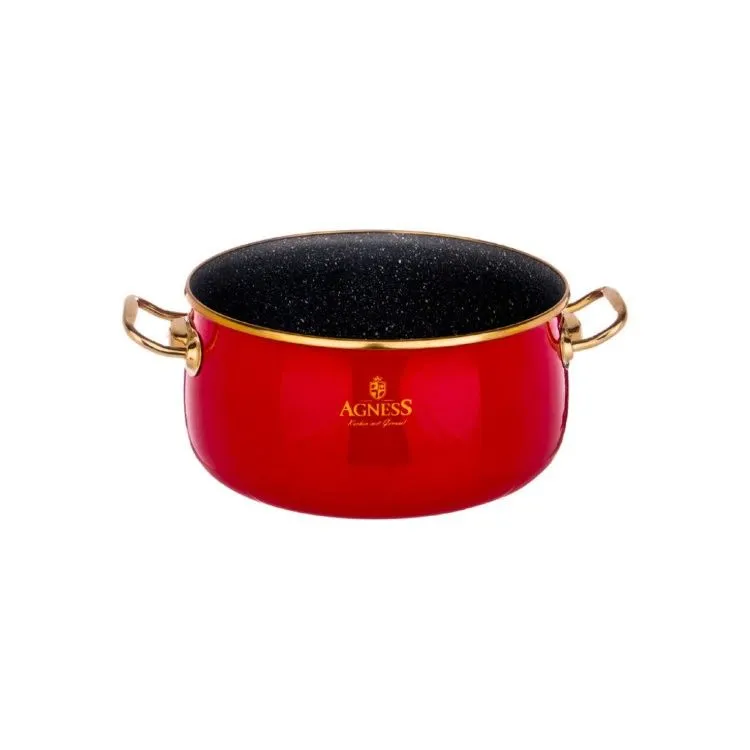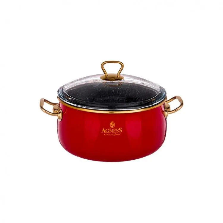 КАСТРЮЛЯ AGNESS ЭМАЛИРОВАННАЯ СО СТЕКЛ. КРЫШКОЙ И АНТИПРИГАР. "МРАМОРНЫМ" ПОКРЫТИЕМ, 18СМ/ 2,4Л