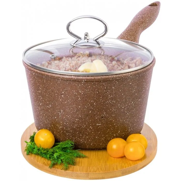 Ковш "Гранит" 34,5*19*17 см, 2 л, с крышкой ф18, высота без крышки - 12 см, высота внутренней части - 11 см, покрытие - 3-х слойное антипригарное