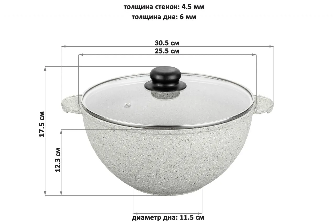 Казан 4 л ГАРМОНИЯ ВКУСА "Серый агат" 30,5*25,5*17,5 см, с крышкой, высота внутренней части - 11,7 см, диаметр дна - 11,5 см - покрытие - 2-х слойное