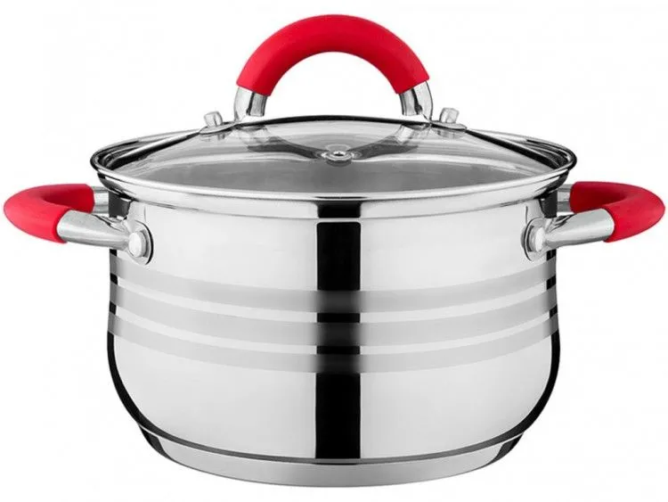 КАСТРЮЛЯ AGNESS СО СТЕКЛ. КРЫШКОЙ,СИЛИКОН.РУЧКИ, 2,8Л, 18*11,5 СМ, НЕРЖ.СТАЛЬ, ИНДУКЦИЯ