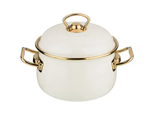 КАСТРЮЛЯ AGNESS ЭМАЛИРОВАННАЯ С КРЫШКОЙ, СЕРИЯ DELUXE, 16X11СМ, 2,0Л, ПОДХОДИТ ДЛЯ ИНДУКЦИИ, ЦВЕТ: МОЛОЧНО-БЕЛЫЙ