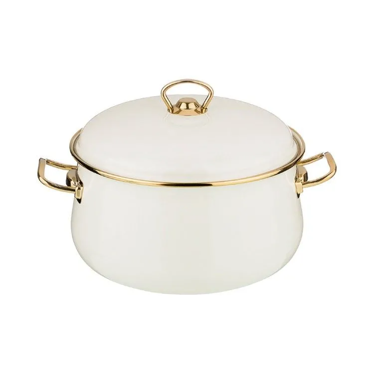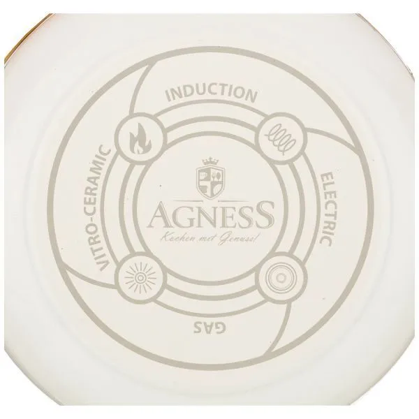 КАСТРЮЛЯ AGNESS ЭМАЛИРОВАННАЯ С КРЫШКОЙ, СЕРИЯ DELUXE, 20X13СМ, 3,7Л ПОДХОДИТ ДЛЯ ИНДУКЦИИ, ЦВЕТ: МОЛОЧНО-БЕЛЫЙ