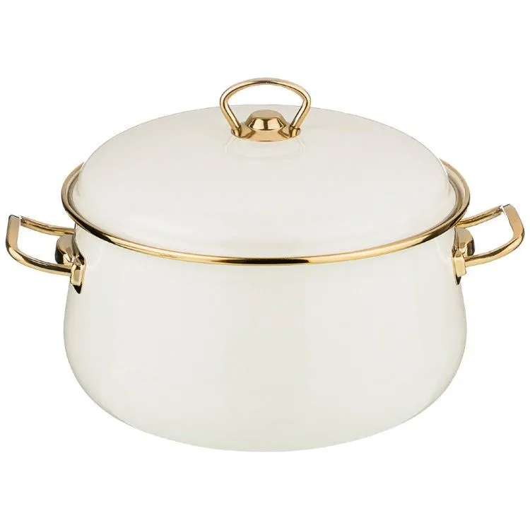 КАСТРЮЛЯ AGNESS ЭМАЛИРОВАННАЯ С КРЫШКОЙ, СЕРИЯ DELUXE, 24X15СМ, 6,1Л, ПОДХОДИТ ДЛЯ ИНДУКЦИИ, ЦВЕТ: МОЛОЧНО-БЕЛЫЙ