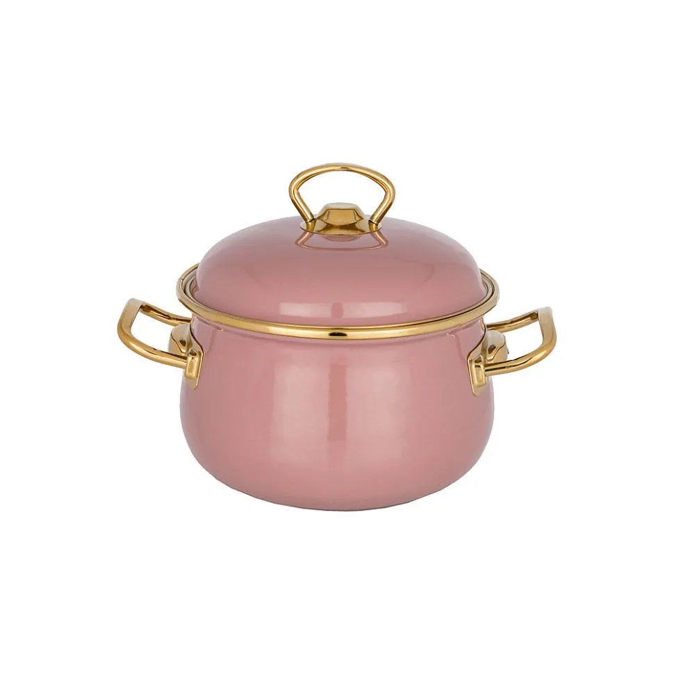 Кастрюля agness эмалированная с крышкой,серия deluxe, 16x11см, 2,0л, подходит для индукции, цвет: французская роза