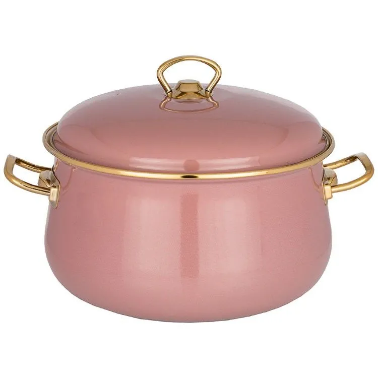 КАСТРЮЛЯ AGNESS ЭМАЛИРОВАННАЯ С КРЫШКОЙ, СЕРИЯ DELUXE, 24X15СМ, 6,1Л, ПОДХОДИТ ДЛЯ ИНДУКЦИИ, ЦВЕТ: ФРАНЦУЗСКАЯ РОЗА