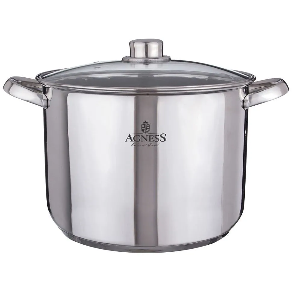 КАСТРЮЛЯ AGNESS СО СТЕКЛЯННОЙ КРЫШКОЙ НЕРЖАВЕЮЩАЯ СТАЛЬ 30*23CM, 16 Л