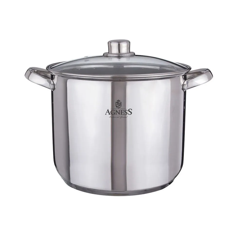 КАСТРЮЛЯ СО СТЕКЛЯННОЙ КРЫШКОЙ, НЕРЖАВЕЮЩАЯ СТАЛЬ 9,0Л, 24х20см, ИНДУКЦИОННОЕ КАПСУЛЬНОЕ ДНО, КЛЕПАННЫЕ РУЧКИ, КРЫШКА С ПАРОВЫПУСКОМ