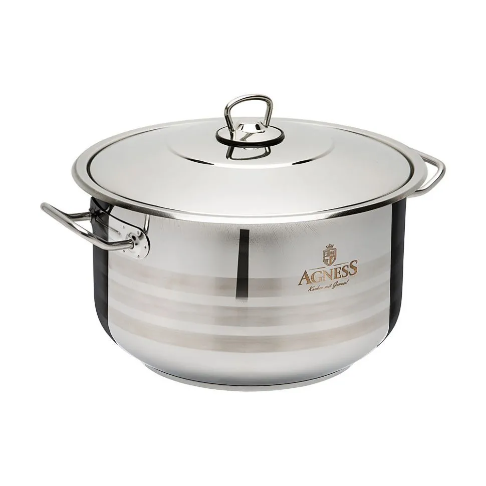 КАСТРЮЛЯ AGNESS НЕРЖАВЕЮЩАЯ СТАЛЬ, 13 Л, ДИАМЕТР=30 СМ. ВЫСОТА=20 СМ. (КОР=2ШТ.)